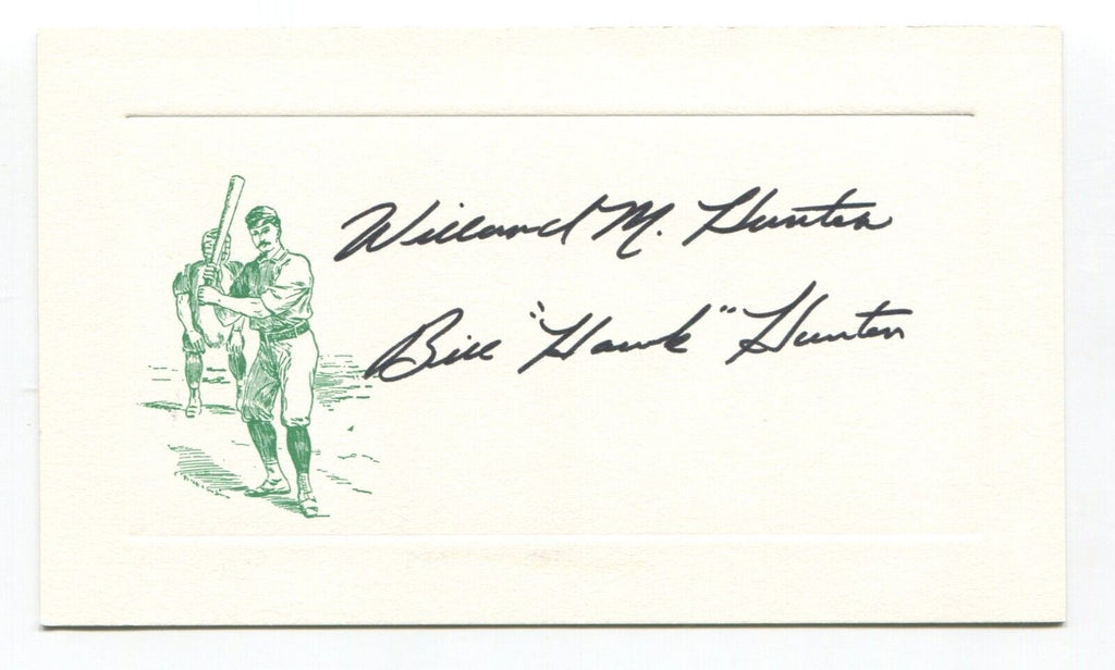 Up for sale is an autographed card approximately 3.5 x 5.5 inch card, boldly signed by baseball player Bill Hunter. Just a great looking autograph that will display nicely. Autograph was acquired by renowned autograph collector Roger Harris.