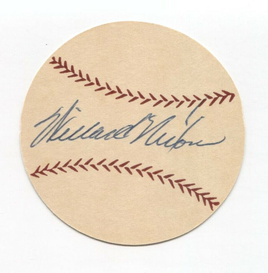 Up for sale is a signed thick paper stock baseball measuring approximately 2.5 inches in diameter, featuring an autograph of Willard Nixon. The third scan (not included with the item) shows the original mailing envelope the signature was received in, postmarked from 1953.  This autograph was part of a large collection of over 700 vintage baseball autographs and memorabilia, all obtained between 1952 and 1954 by the same original owner.