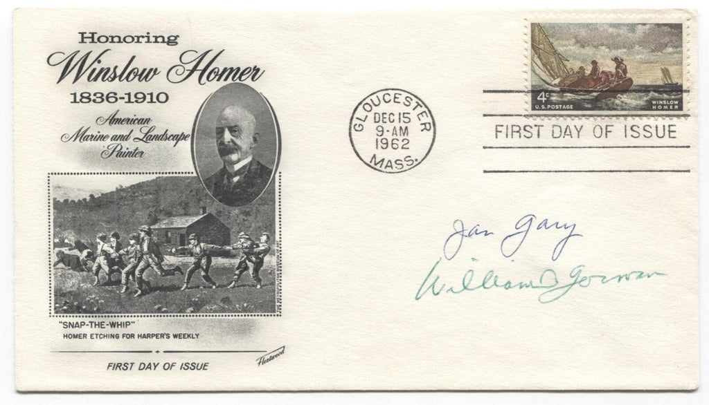 Up for sale is a signed First Day Cover, boldly autographed by husband and wife arts William Gorman and Jan Gray. Autograph was part of the well known single owner, original "Roger Harris" collection of thousands of autographs, acquired over many decades of collecting.