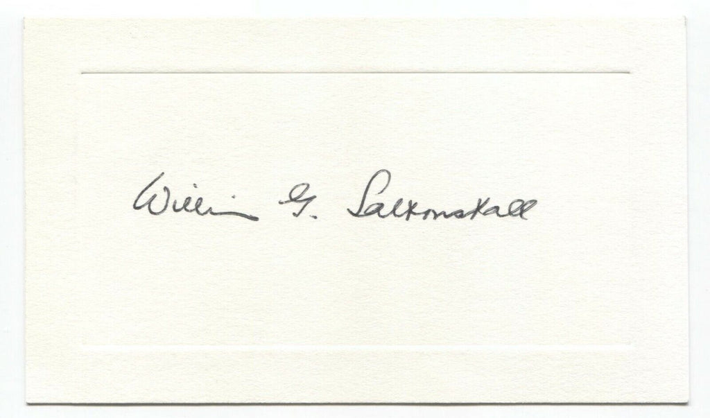 Up for sale is a signed approximately 5.5 x 3.5 inch thick paper card, boldly autographed by author and educator William Saltonstall. Autograph was part of the well known single owner, original "Roger Harris" collection of thousands of autographs, acquired over many decades of collecting.